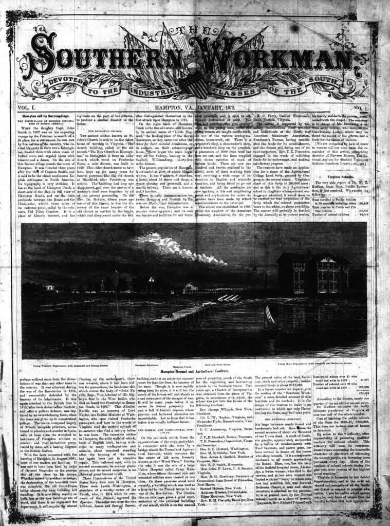 - Southern Workman (Hampton, VA). “Hampton Normal and Agricultural Institute.” January 1872. https://archive.org/details/SouthernWorkman18721880/mode/1up.