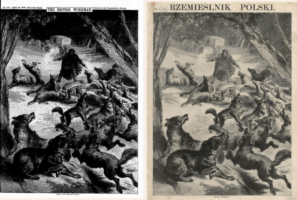 Русский Рабочий (Russkiy Rabochiy / Russian Workman) was edited by Мария Григорьевна Пейкер (Maria Grigorievna Peiker). She became an evangelical Protestant after hearing Dwight L. Moody speak in London. This put her somewhat at odds with ecclesiastical censors but she persisted. Her paper included contributions by Russian Orthodox clergy and Russian literary figures. I’m not sure who gave the engravings to her. I know she received some support from the London Religious Tract Society, so she clearly had some close contacts in the city.19 While her paper reused illustrations from The British Workman, its content appears to be unique.